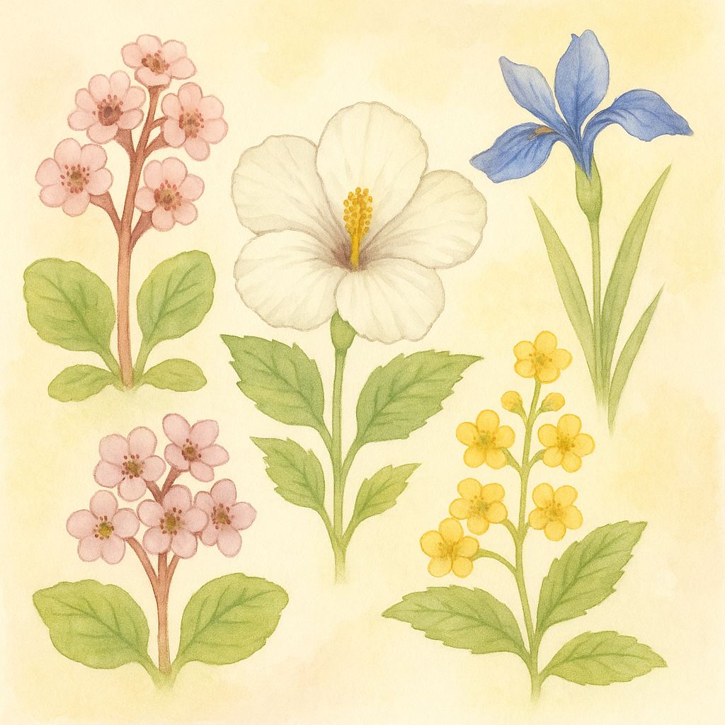 たとえば「ヒマラヤユキノシタ」は、高山植物らしい力強さと可憐さを併せ持ち、ピンク色の小花を咲かせる姿が印象的です。