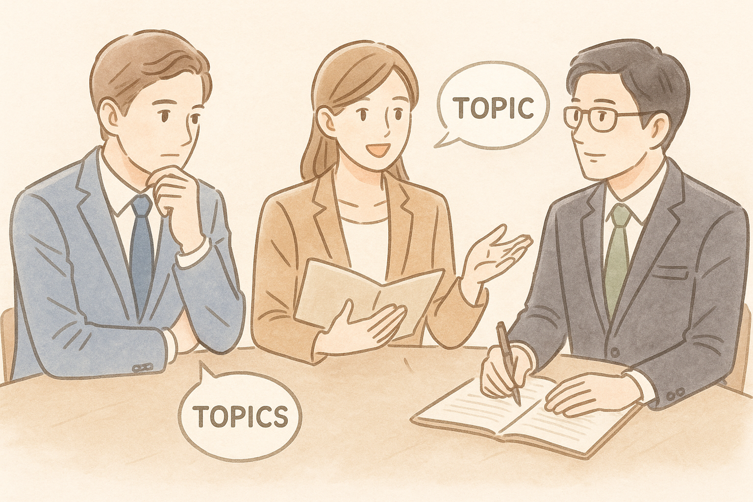 ビジネス会話の中では、「トピック」はその場で掘り下げて議論するべき事項として扱われます。